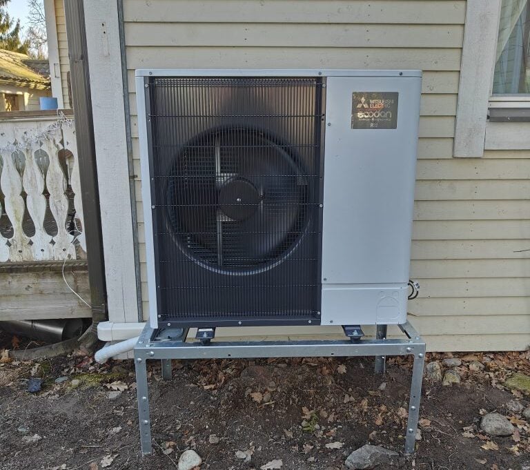 Talvipakkasilla Mitsubishi Electric -lämpöpumpun ulkoyksikön vedenpoisto saattaa toisinaan jäätyä. Ilmiö on melko yleinen, eikä se useimmiten tarkoita varsinaista laitevikaa.