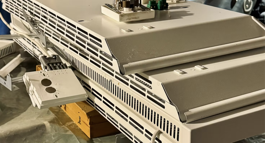 Alkuperäinen lämmitys oli toteutettu sähköpattereilla, jotka purettiin remontin aluksi pois.